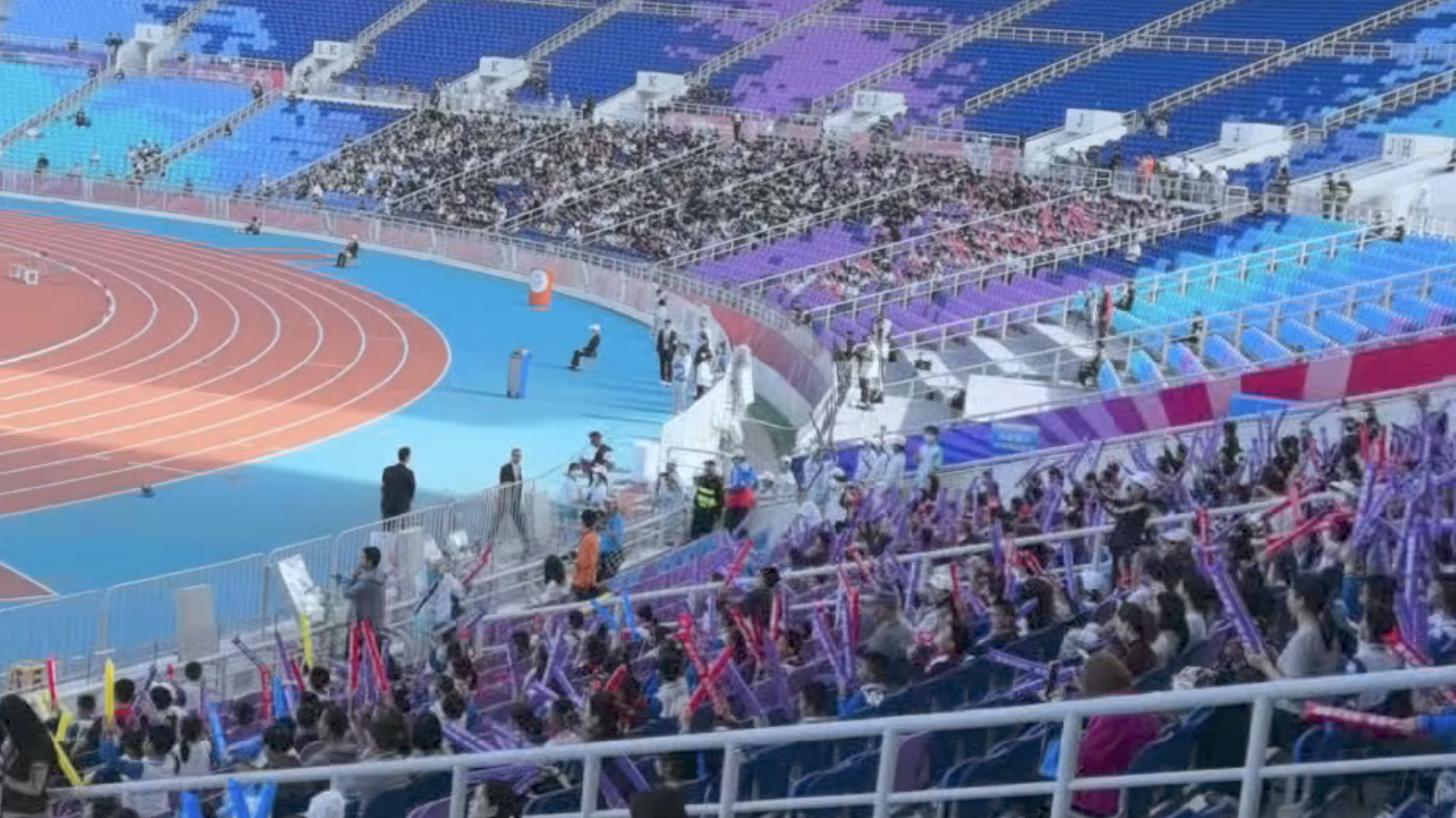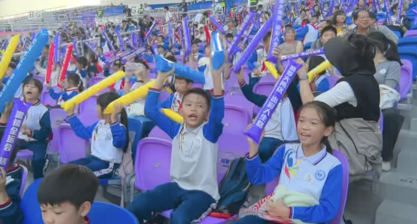 赛事时分,在不雅众处事志愿者的关怀开导下,学生入场、就坐及退场等各情势均鱼贯而入。现场披发充气棒、鼓掌器与小国旗等,成为烽火氛围的“神器”——每当明白员冲过非常、完成挑战,学生们便挥舞着小国旗,用充气棒敲击出整都节律,忻悦声、大叫声接连不竭,赛场氛围猛烈友好,取得世俗好评。