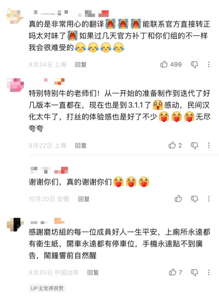 直到上线后的第二个周末,许多磨坊组的成员才谨慎绽开游戏。看到我方的译文出面前屏幕上时,有东说念主说,「开场诗一出来,我就有点泪下如雨了。」