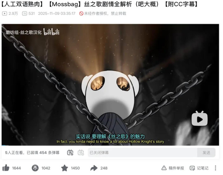 汉化工作结果后,他们还翻译了一些生肉,把外网的优质剧情融会视频搬到B站来。