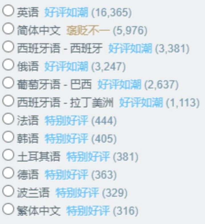 游戏上线后,Steam简中版块得到了超过多的差评,评价远低于其他地区。