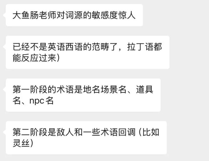 而野狐狸天然不是译者,却险些贯串总共这个词翻译历程。他的身份更接近「玩家参谋人」。在团队接头中,他险些一直在线窥屏,靠着极快的通关速率和准确的悲痛,能随时为寰球提供截图、高下文或坐标说明。